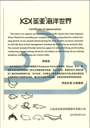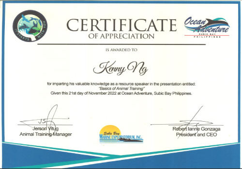 It is my absolute pleasure to recommend Mr. Ken Nee Ng to your organization. Ken Nee and I worked together at Ocean Adventure, for a little over two years, from May 2014 to June 2016. I thoroughly enjoyed my time working with Ken Nee, and came to know him as a truly valuable asset to absolutely any team. He is honest, dependable and incredibly hard-working. His knowledge of the Aquarium Operations and expertise in Animal Training, Care and Enrichment were huge advantage to our entire operations. He put these skills set to work in order to develop the system in our Aquarium Department making it more efficient and effective, motivate and improve our Aquarist team and develop Supervisors. Later on, he took the challenge of adding to his purview and developing our Terrestrial Section. He improved the training, care and welfare of our Terrestrial animal collection, motivated and improved our team of trainers and developed Supervisors. Along with his undeniable talent, Ken Nee has always been an absolute joy to work with. He is a true team player, and always manages to foster positive discussions and bring the best out of other employees. Without a doubt, I confidently recommend Ken Nee to join your team. As a dedicated and knowledgeable employee and an all-around great person, I know that he will be a beneficial addition to your organization. Please feel free to contact me at cgmagno@oceanadventure.com.ph should you like to discuss Ken Nee’s qualifications and experience further. I’d be happy to expand on my recommendation.