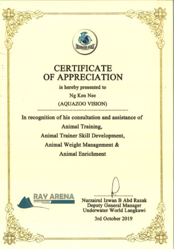 As a curator in Underwater World Langkawi I have been working with Kenny who is a marine mammal trainer for several years. I found him to be consistently hard working, dedicated, reliable and have lots of passion for marine mammals. He has successfully trained and guides our junior trainers on animal training he also has trained our sea lion show for Underwater Wold Langkawi. I highly recommend Kenny for employment. He is team player and would make a great asset to any organization.